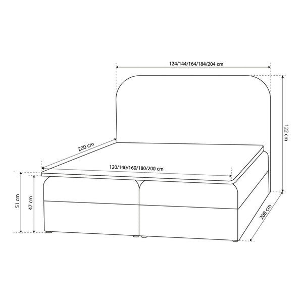 Łóżko kontynentalne z pojemnikiem w stylu minimalistycznym – tapicerowane, zaokrąglony zagłówek | Gory