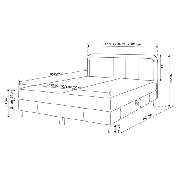 Łóżko kontynentalne z pojemnikiem – wysoki zagłówek, 2 pojemniki na pościel | Pole
