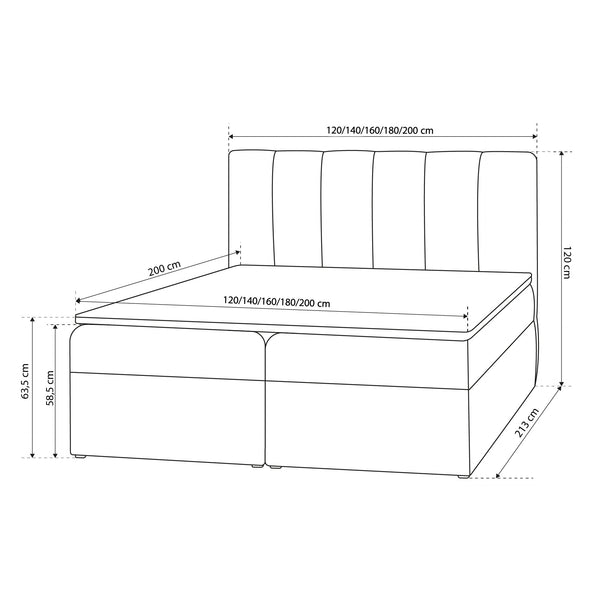Łóżko kontynentalne z topperem i pojemnikiem w stylu skandynawski – tapicerowane, pionowe przeszycia | Stavy