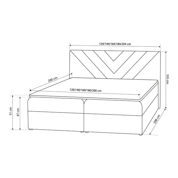 Łóżko kontynentalne z topperem w stylu nowoczesnym – tapicerowany zagłówek, 2 pojemniki na pościel | Lasy