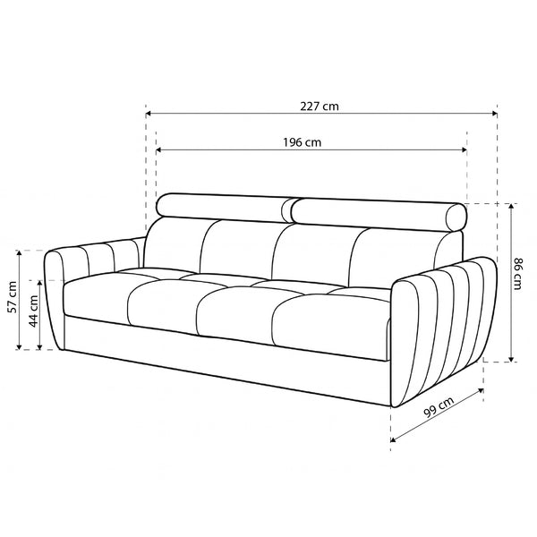 Sofa z funkcją spania 3-osobowa 227 cm w stylu minimalistycznym – pianka HR, regulowany zagłówek, puma | Franec