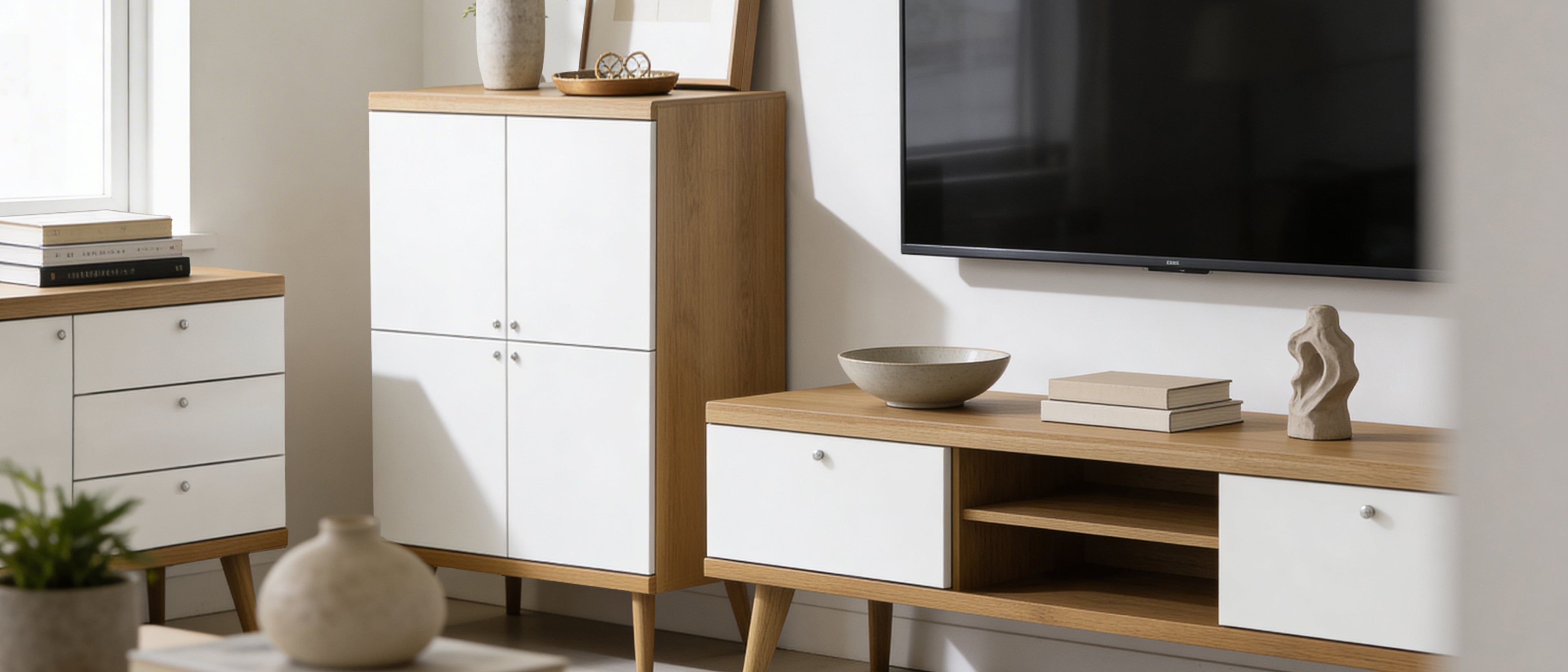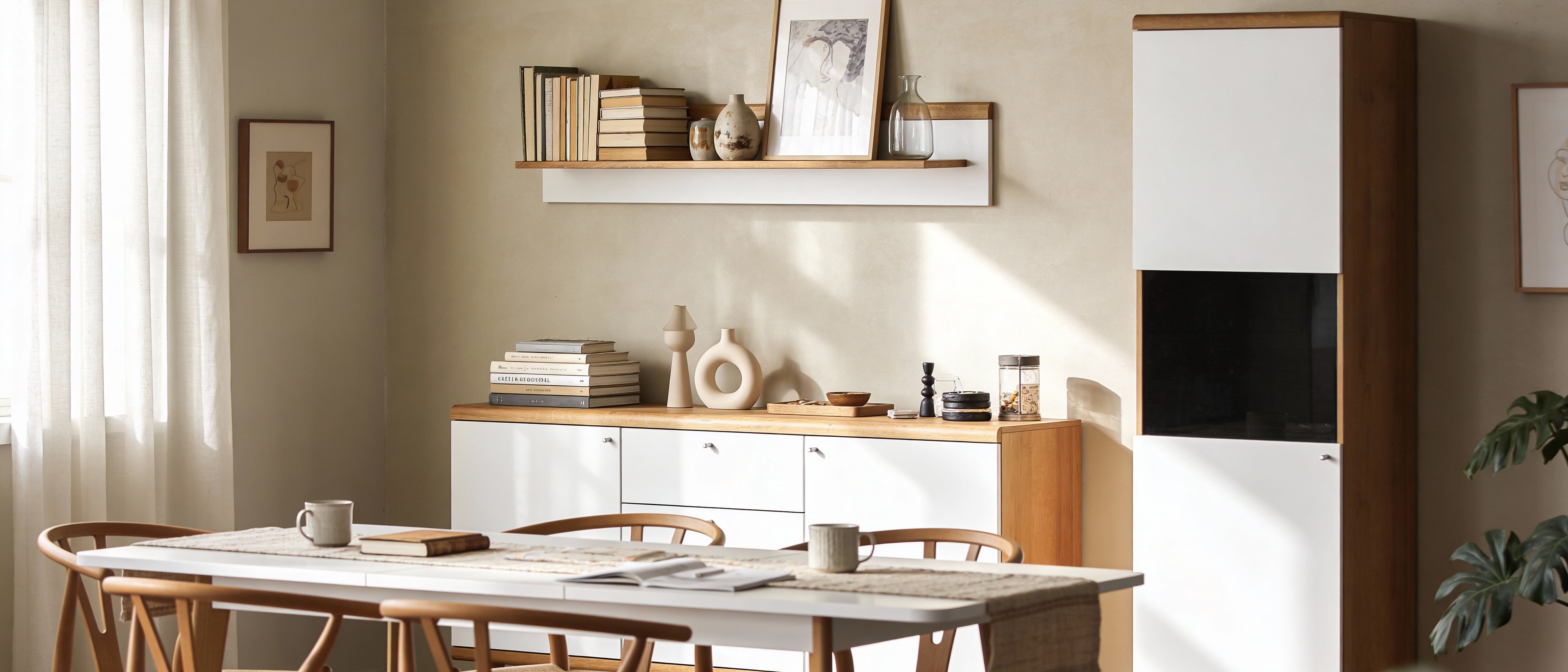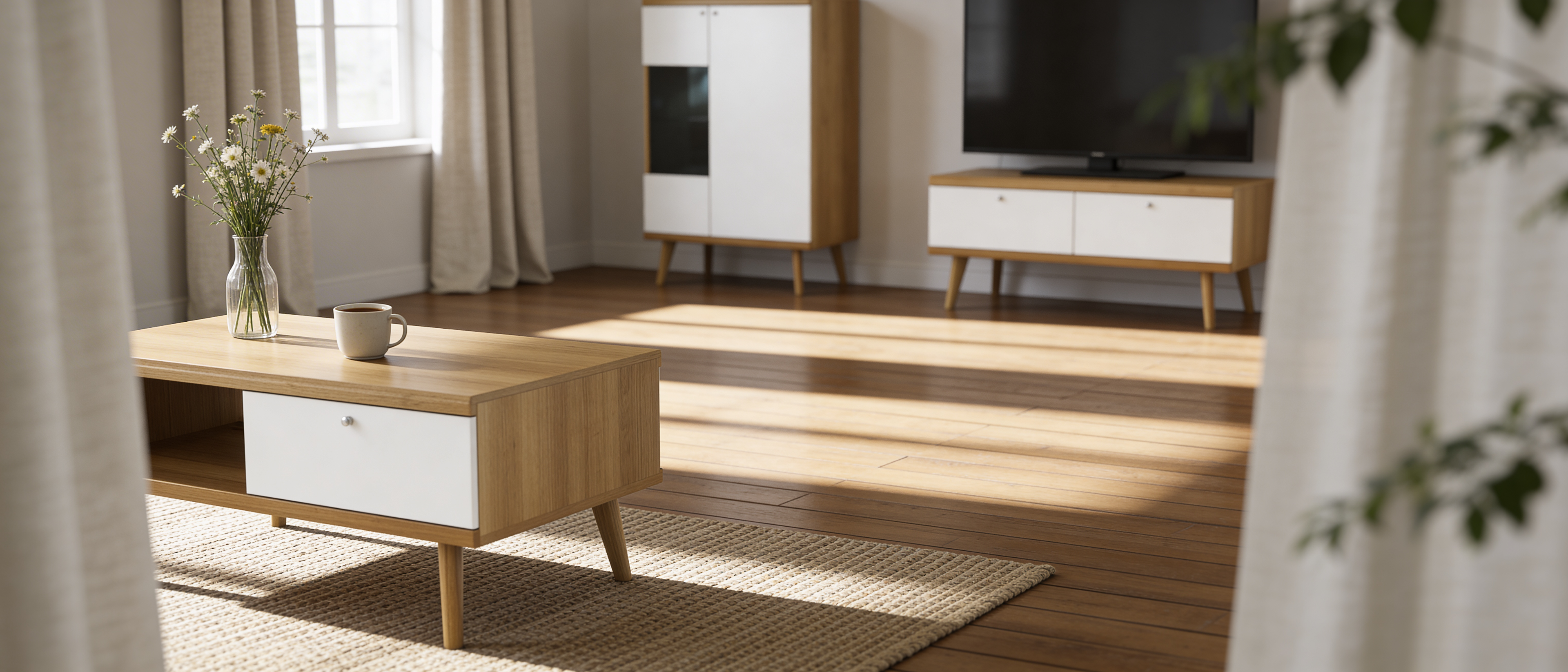 To styl skandynawski z nowoczesnym akcentem – proste formy, naturalne materiały, subtelne uchwyty i brak zbędnych ozdobników. Kolekcja łączy minimalizm z przytulnością.